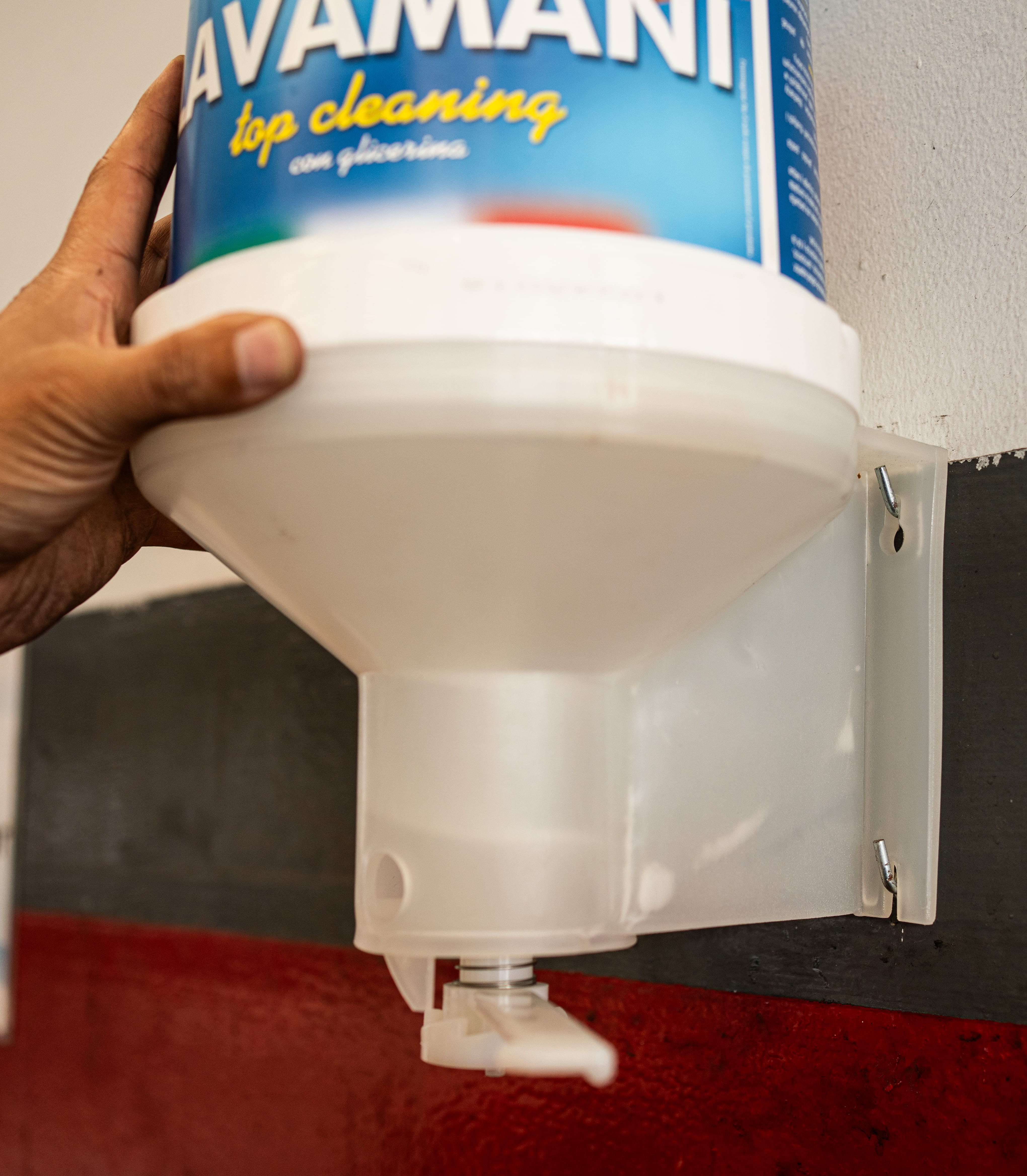 Coloque el nuevo galón a presión sobre la boca del dispensador limpio.