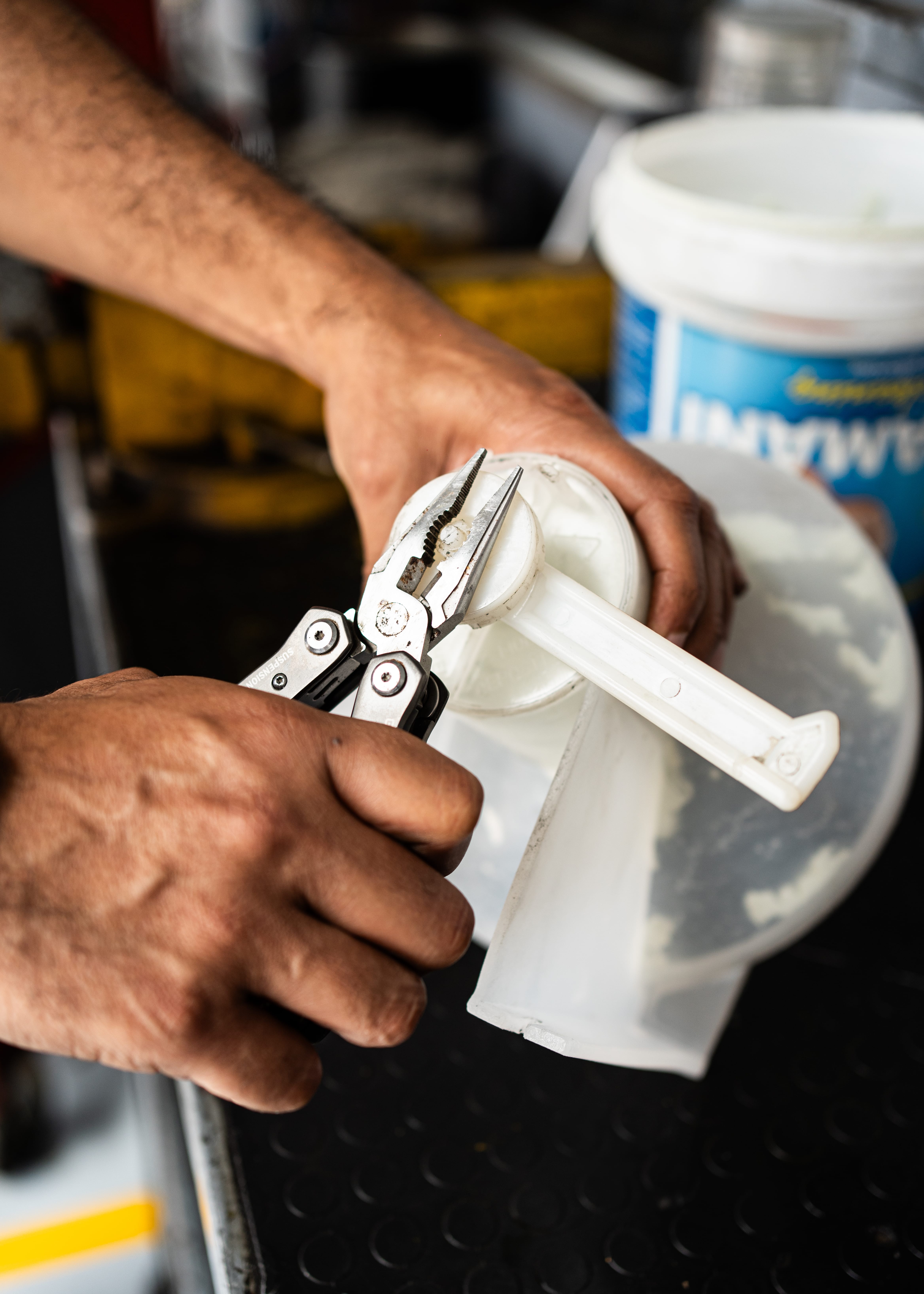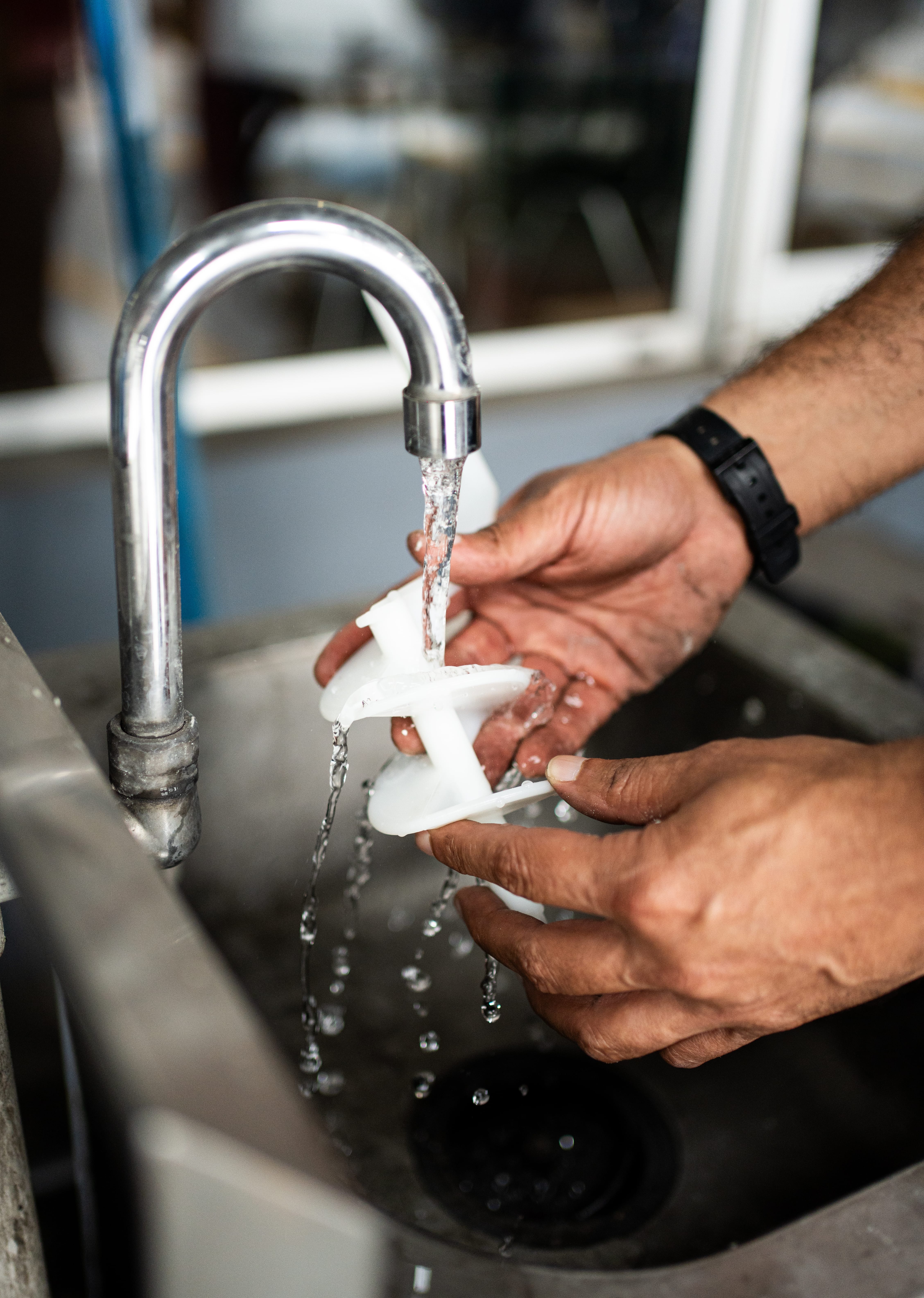 Cómo cambiar el galón vacío y limpiar el sistema.